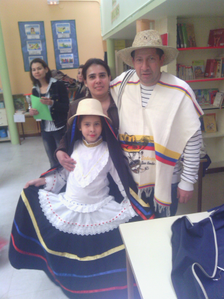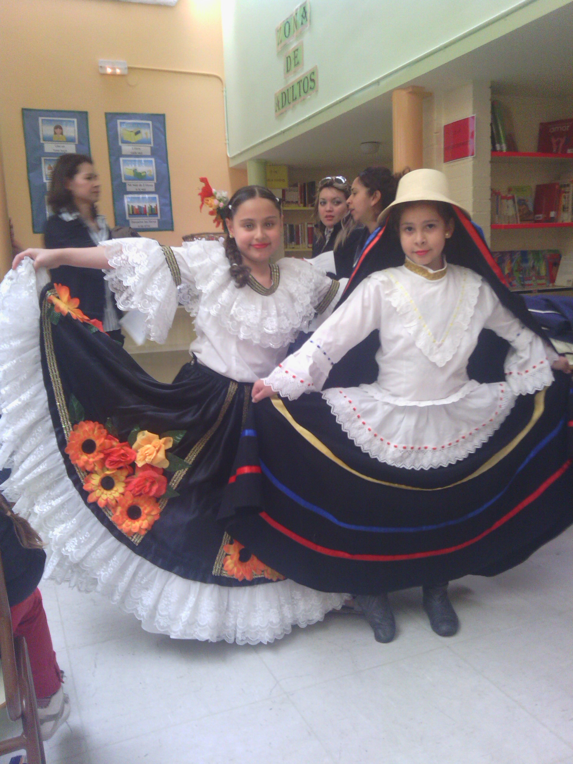 Niñas con dos de los trajes típicos de Colombia